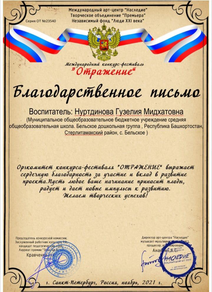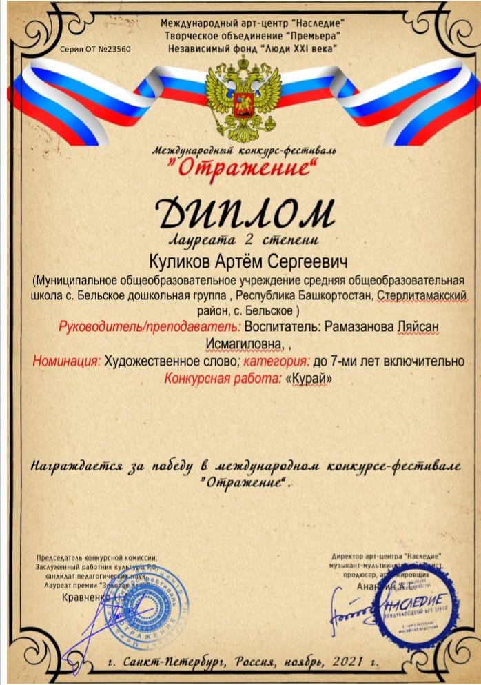 Воспитанники дошкольной группы МОБУ СОШ с. Бельское приняли участие в Международном конкурсе-фестивале «Отражение» в номинации «Художественное слово», поздравляем их с победой!