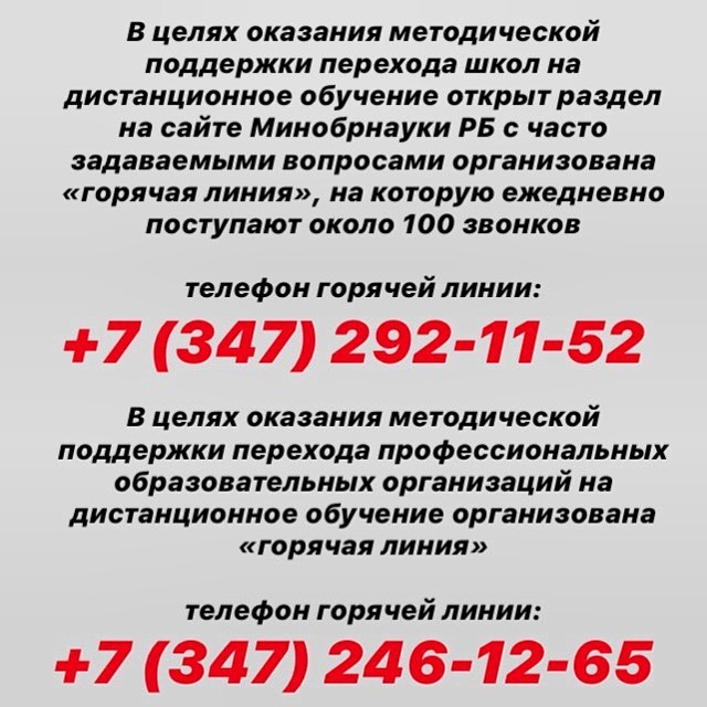 Телефон горячей линии по вопросам перехода на Дистанционное образование